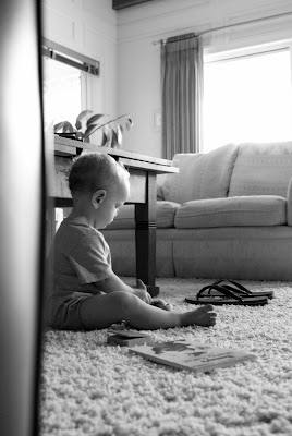 caught him in the den reading to himself. wonderful. precious. overwhelmed with love for this kid